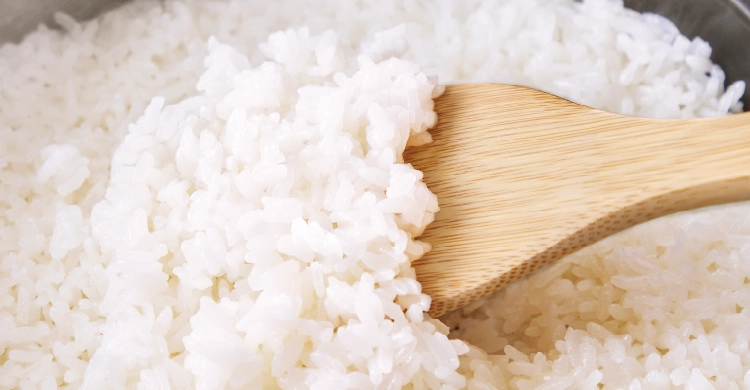 おむすびのためだけに 独自ブレンドした国産米を 毎日おいしく炊き上げます。