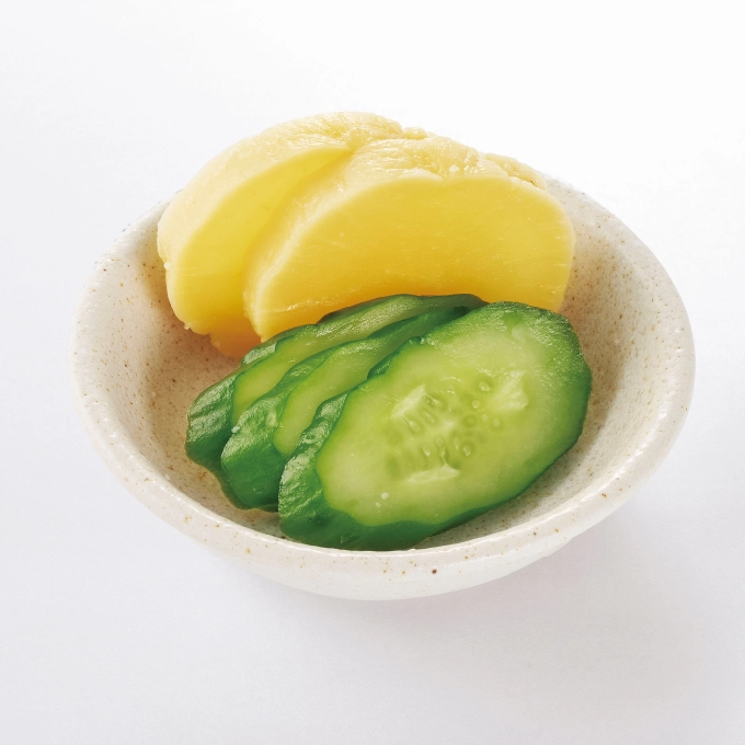 きゅうり、たくあん2種のお漬物をセットに。180円