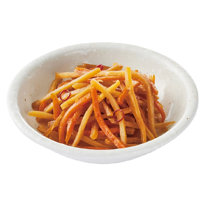 定番のきんぴらごぼう。ごぼうの香りと食感を活かした、風味豊かな味付けです。250円